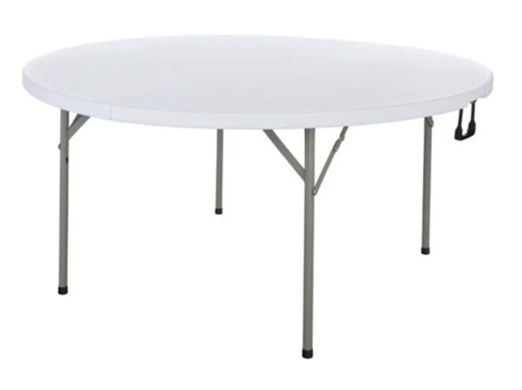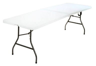 Plastic Folding table constructed with sturdy steel legs, high-density polyethylene (HDPE) top in white, and sturdy tubular steel frame. Designed for social and corporate events.