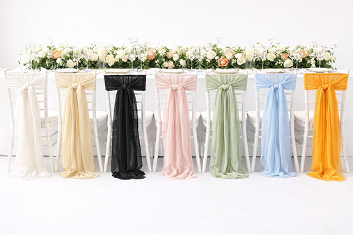 Premium Gauze Table Runner High-quality gauze table runner with a soft drape and light texture. Ideal for weddings and elegant events. Adds a romantic and sophisticated style, perfect for head tables, guest tables, and decorative stations. Easy to combine with different styles of tableware and décor.