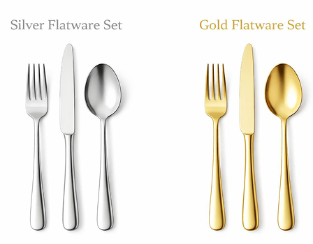 3-piece silver cutlery set with a modern design and premium metallic finish. Perfect for weddings, special events, and decorated tables that seek a touch of elegance and sophistication.